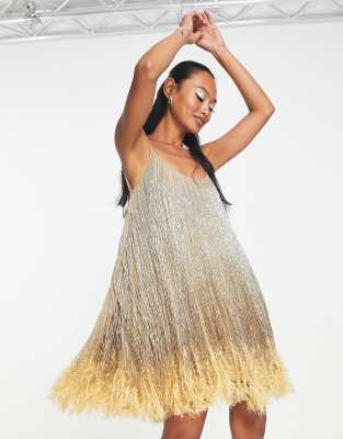 ASOS DESIGN cami embellished mini dress with beaded fringe and fluffy hem in ombre Very well made.