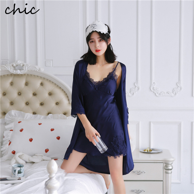 Silk Robe Women Nightwear Robe Set with Pad Sexy Lace Sleepwear Night Dress Robe Very well made.