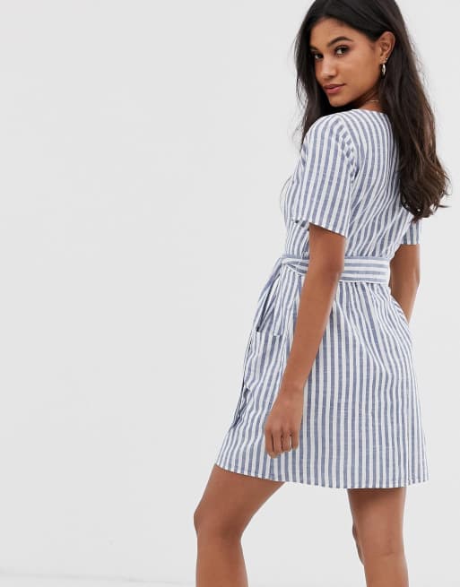 Blue And White Striped Linen Style Dress With Tie Up Depop Very well made.