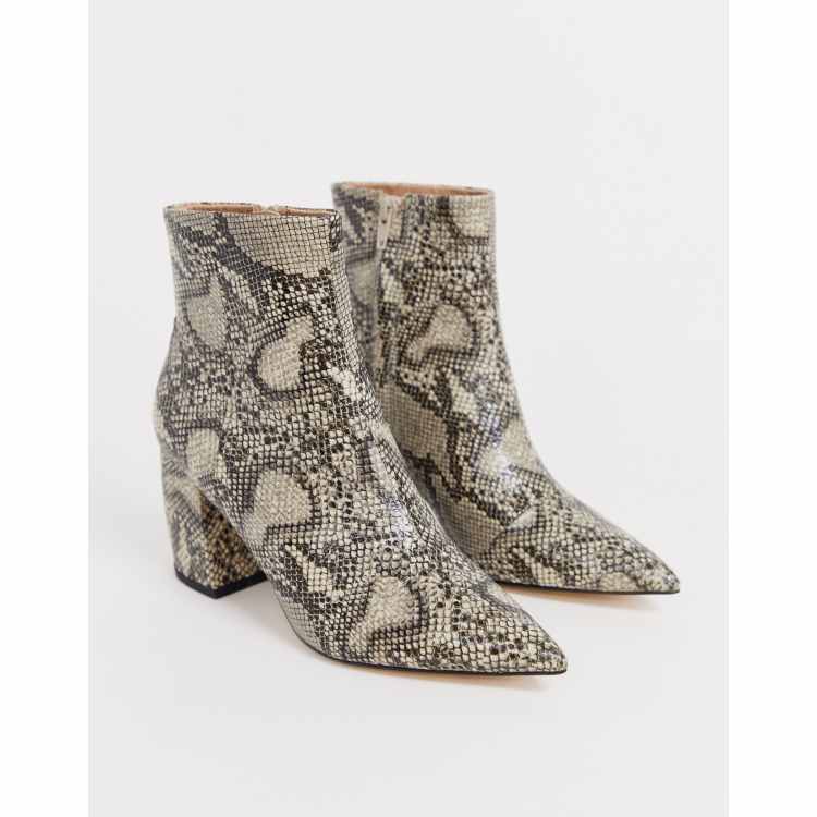 OFFICE aloud pointed block heel ankle boots in snake Very well made.