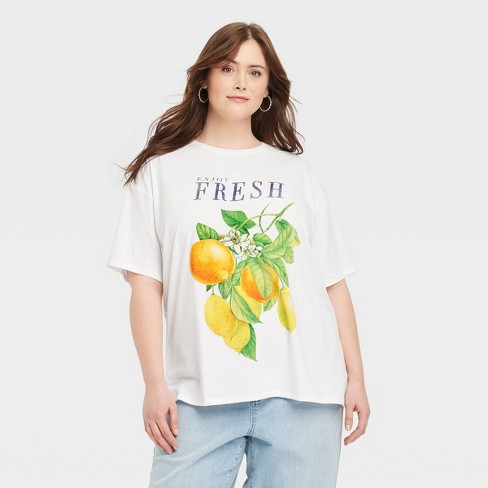Women s Fresh Lemons Oversized Short Sleeve Graphic T Shirt White 3X Very well made.